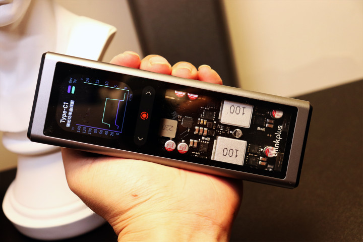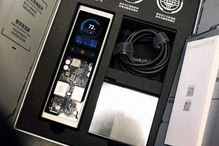 联想FLUXO移动电源在工业设计上实现了科技美学与实用主义的平衡。半透明外壳设计不仅展现了内部精密元器件的机械美感,更通过4.5mm仿生圆角与39mm厚度优化了握持体验,用户反馈其握感如“撸猫”般舒适。2.01寸赛博跑车屏的加入,将实时功率、温度曲线以动态视觉形式呈现,使充电状态一目了然。
